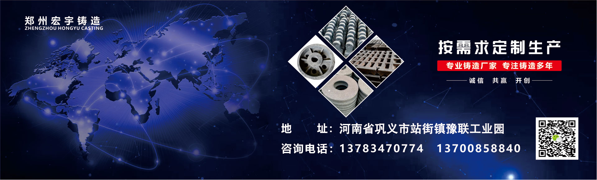 鄭州宏宇鑄造位于河南省鄭州鞏義市是鑄造件廠家,主要生產(chǎn)生鐵機械配件、耐磨襯板、耐磨錘頭、合金耐磨錘頭、制砂機錘頭、鑄鋼件、高鉻合金鑄件、球墨鑄鐵件、消失模工藝鑄件、砂型工藝鑄件等!來樣即可加工。 我們技術力量雄厚、設備齊全,目前有高級技師數(shù)名,技術人員數(shù)十名,能滿足客戶的不同需求,來圖來樣均可生產(chǎn),而且為了確保產(chǎn)品質(zhì)量進一步得到完善和提高, 確保供貨及時達到客戶的滿意,我們采用優(yōu)質(zhì)原材料及先進的制造工藝!